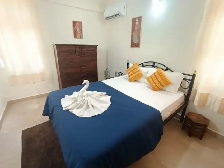 Make your Goa trip memorable with a comfortable stay with us at our Candolim Abode located at Dona Alcina Resort. Air-conditioned 2BHK with 2 bathrooms, one balcony, two queens beds in each bedroom, Two additional mattresses means there is enough to accommodate groups of up to 6 people, LED TV with Cable connection, Sofa, Fresh linen, Full-fledged kitchen, Power Back-up for fans and lights, we have all covered.